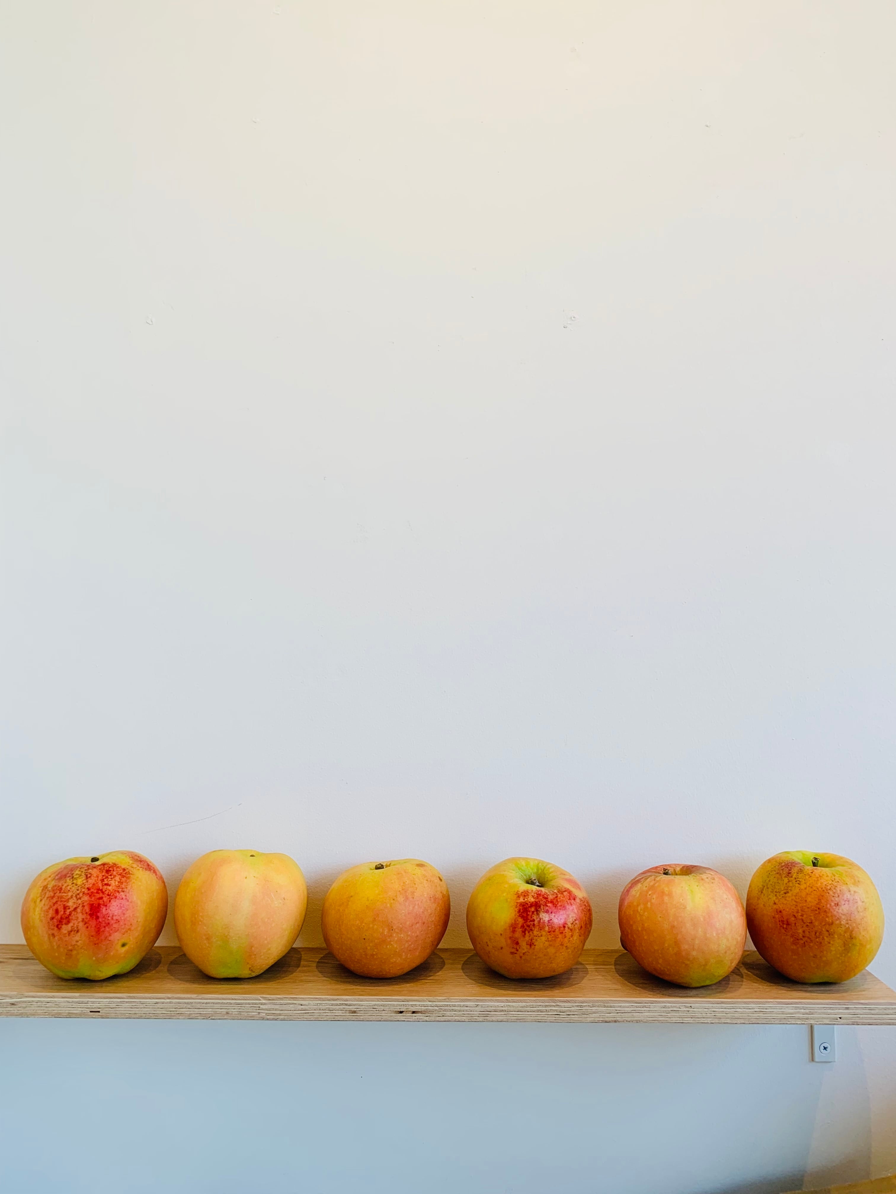 果肉の赤い赤肉品種の青りんごで、スッキリした酸味と濃厚な果汁、食べ応えのある食感が特徴的です。